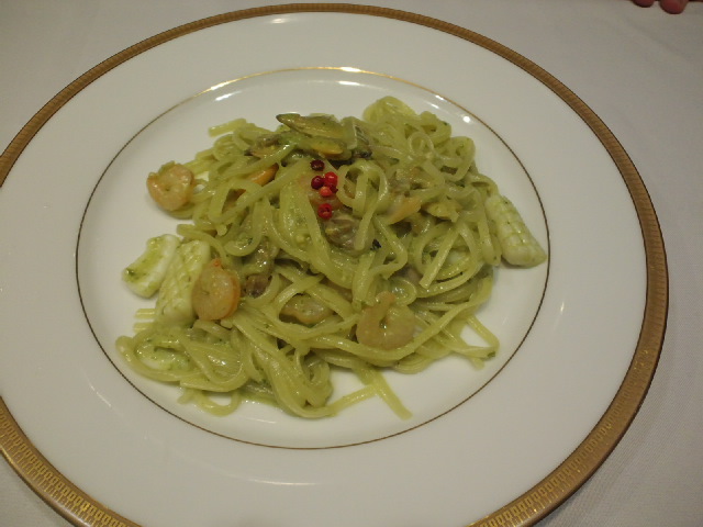 連れの子供は生パスタもジェノベーゼソースも大好物なのでこちらも即決で『シーフードジェノベーゼ』