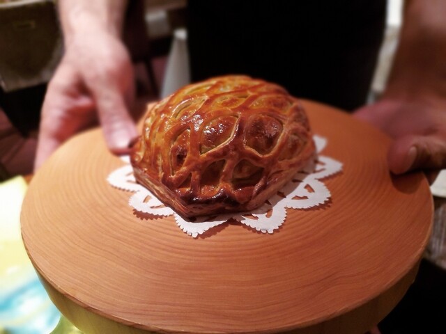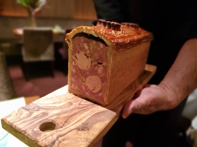 3つ目は開店当初から?(少なくとも8年前以上)あるこちらのスペシャリテ3種の神器パイ包み焼き。ただずっとやっているとは言ってもその内容は前とは全く違う。ファルスの構成からパートの厚みまで全てが長年考えて行き着いた物。シャラン鴨、パンタード、フォアグラ、鴨とパンタードのミンチがファルス。おそらくシェフご自身はまだ完成とは思っておらず5年後、いや2年後にはまた変わってるかもしれない。ソースはペリグー。