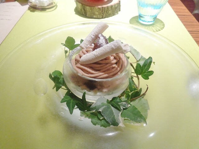 デセールはモンブランのパフェ仕立て。去年同時期のデセールもモンブランだったが、仕立ては全く違う。これも良かった。