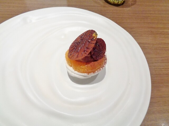 デセール2はスペシャリテにしたいタルトショコラショー。オープン当初からデセールに温かいショコラのタルトをやりたいというシェフの構想がありましたがようやく形になったようです。前任者の橋本パティシエの時にも頂きましたが、今回は時期に合わせてマンゴーとの組み合わせ。前回のチェリーは組み合わせとしては王道ですがマンゴーや夏の爽やかなフルーツとの相性も良いです。新生姜のガリも。今レストランでデセールの好きな店はこちらとフロレゾン、オランジュリ、ソンブルイユあたり。オランジュリだけは厳密なパティシエというポジションの人はいませんが。