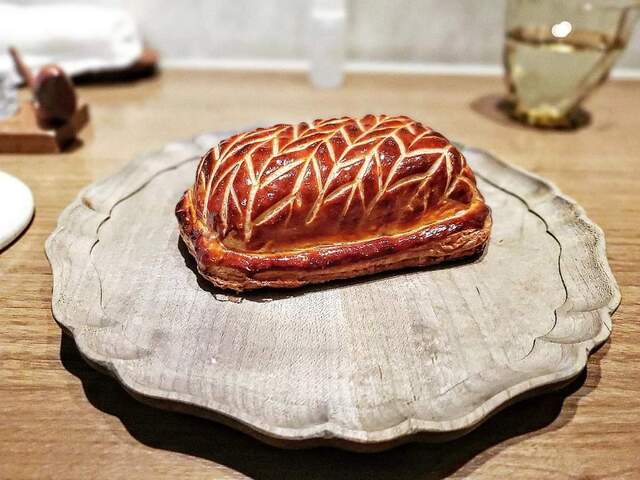 魚料理は太刀魚のパイ包み焼きです。魚のパイ包みではもしかしたら太刀魚が一番合うかもと思っております。美味い。シンプルなブールブランソース。