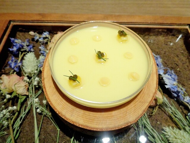 ・トウモロコシのムースとクリアなジュレ 利尻産雲丹
