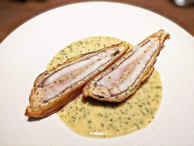 ・鹿の腹子のムニエル 海苔風味のブールノワゼット