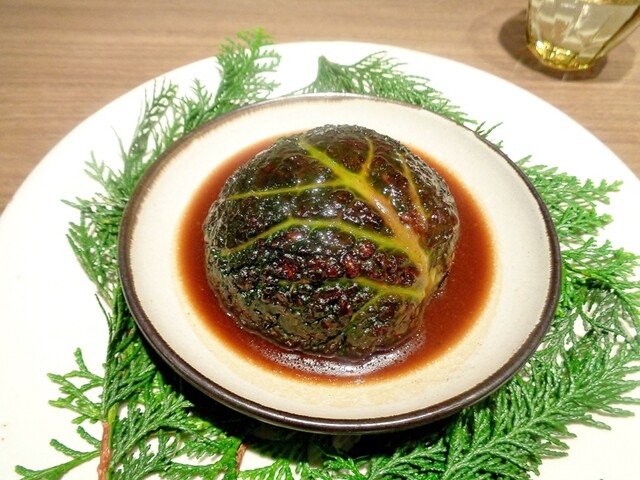 アミューズ3は海亀のコンソメ。コロナの影響で船が出せないらしく例年に比べ漁獲量が少ないという。ヒレの部分と蓴菜入り。普段こちらはコンソメにシェリー酒を入れないですが今回はわずかに加えたという。