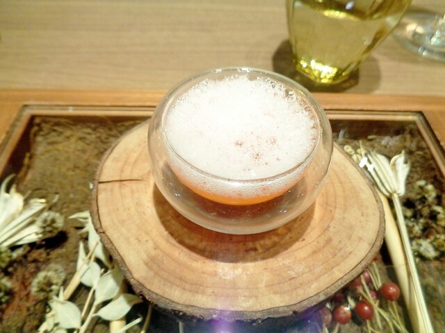 アミューズ2はヒヨドリのビスク。久しぶりに作ったという。作ったのはどこが最初かとは言わないですが私がジビエのビスクを料理として初めて意識したのはこちら。群を抜いて美味い。トリュフオイルで香りも良い。