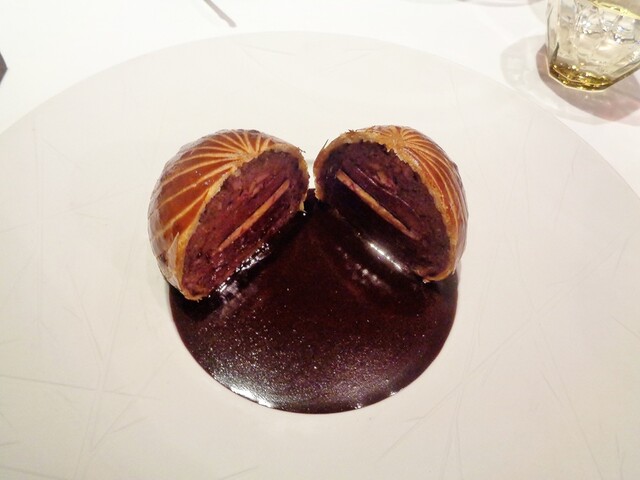 もう一つは鹿のパイ包み焼きです。ファルスはキノコのデュクセルのムースとフォアグラ入り。