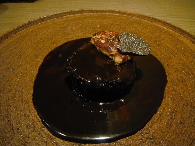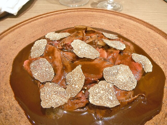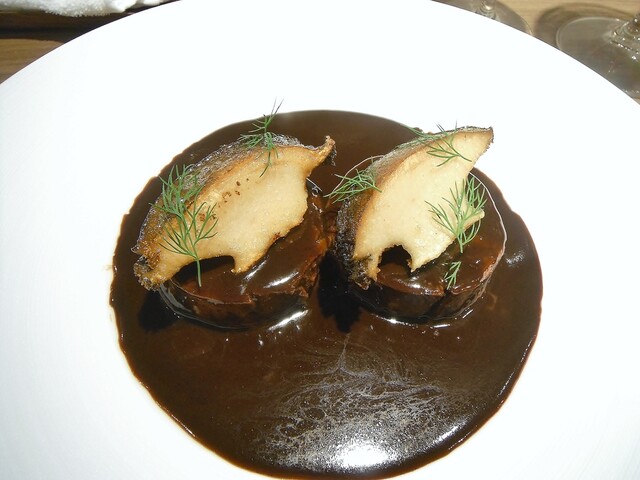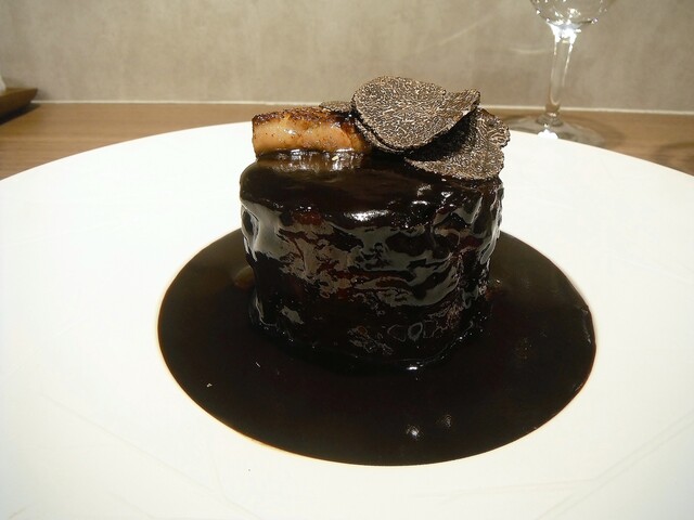 リエーヴル・ア・ラ・ロワイヤルは多分こちらのシェフの物を食べる機会が一番多い。かつては他所でリエーヴル・ア・ラ・ロワイヤルに関しては積極的に食べる事もしてなかったのでここやシュマンなどが基準になってしまってる。今季は例年になく多方で頂く事が多かったですが他所を知るにつれここの完成度の高さを知る事になる。食感、ソース、香り、一体感、リエーヴルそのものの味わいなどのバランスが素晴らしい。国産リエーヴルでのロワイヤルなら現状こちらがほぼ頂点にあると思います。