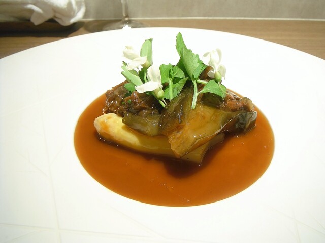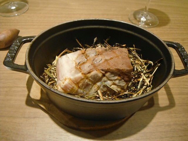 deco時代はショーソンも一つの得意料理としてよく提供されてたが色々な兼ね合いからなかなか出来なくなったそうな。どういう風に構築されてるかは控えるが初めてショーソンに対する理念を伺ってとても感銘を受けました。自分がショーソンにする事によるロティと比較した時のマイナス面として考えてた部分を完全にクリアした感じ。まさに理想とする物。前菜扱いなんでソースはないが、全く物足りなさはなく構築された一体感のある旨味を存分に堪能出来た。