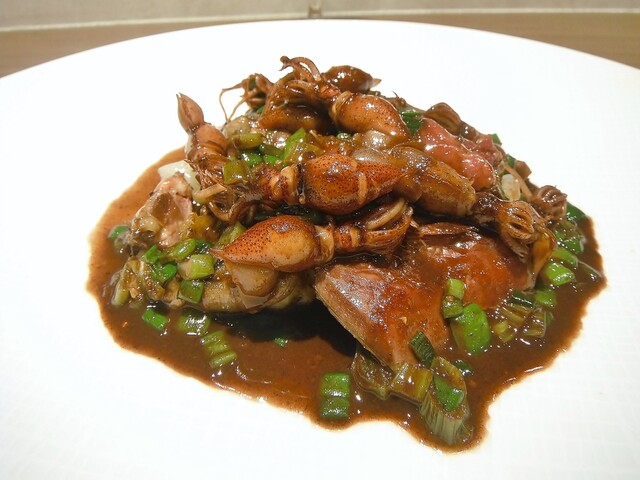 骨ごと磨り潰した少しざらついた口当たりのビスク。少し固めにした温卵は凝固してない部分がビスクに流れて薄まる事を懸念しての事だという。高価な素材故になかなか遊べないベカスだがさすがにポテンシャルが他より抜けてるのでこういう別のアプローチでも香り、旨味を感じる事が出来る。