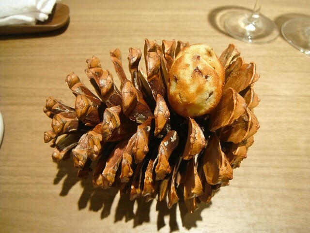 アントレの白子と合わせたのは1ヶ月熟成させた塩辛をイメージしたキジバト。最近こちらでは陸上の物と海の物を合わせる料理を頂きますが色々頂く内に組み合わせに無限の可能性を感じるようになった。野鳥類はフザンタージュにより海の物の肝のような香りが出てくるので、磯っぽいニュアンスとも相性が良いし今回のような白子とも違和感が全くない。