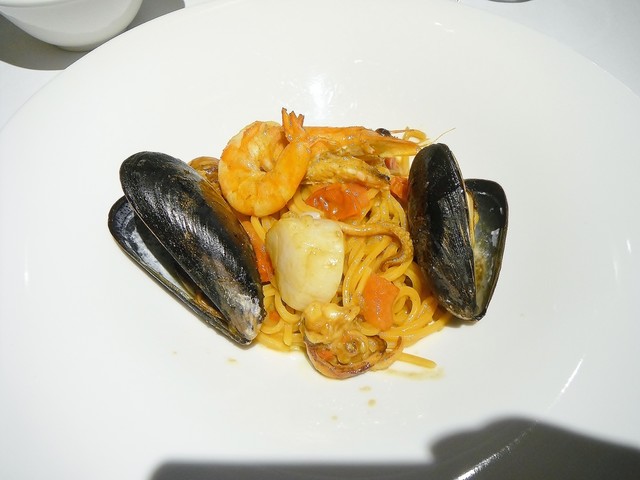 キタッラより少し細いキタリーニと魚介の旨味の凝縮したブロデットを合わせたパスタ。ブロデットは所謂ブイヤベースみたいな物。カチュッコやチュッピン、ズッパ・ディ・ペッシェなどは食べた経験からサフランは使ってない気がするが、これはサフランがしっかり効いており、イタリアの魚介ズッパの中では最もブイヤベースに近い。マルケ州の名物とかで、現地では厳密に使う素材を定められてるエリアもあるという面もブイヤベースっぽい。昔にフェリチェリーナで食べた伊勢海老のキタッラがサフランが効いててとても好きだったのですが、それ以来魚介物でもサフランの効いたパスタを食べれる事がなかった。こちらはそのずっと食べたかった味を思い出させてくれ、もうどう考えても美味いとしか良いようのない逸品でした。