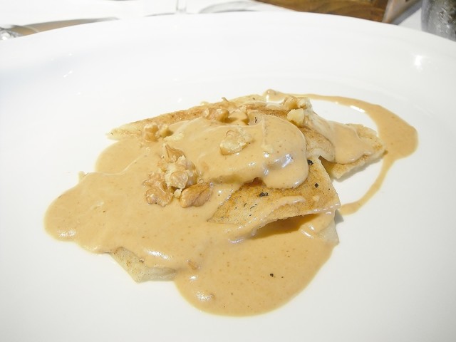 家禽のウサギをある程度の塊感を残した白ラグーにカステルマーニョ。ソフリットの下支えがしっかりありウサギ自体は淡白ながら深い旨味のあるカステルマーニョが加わる事によりしっかりした味わいに変貌する。店によってはカップ麺みたいなヨレヨレな食感のタヤリンもあるがこちらのは食感もよく香りもある。タヤリン・イン・ブロードみたいな仕立てでも相当美味いと思う。