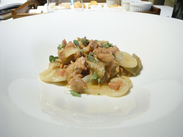 本来はマルケの代表的なプリモ、ヴィンチスグラッシ(詳細は過去の郷土パスタコースにて)でしたが、過去に食べた事があるとのことで違うのを用意して下さいました。