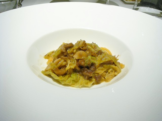 本来猪のサルシッチャだった物を前回食べたとの事で変えて頂きました。ズッパと言えばフィオッキを思い浮かべるがあそこで食った鮑のズッパに匹敵する美味さ。しかしこれは高級食材を使った物ではなくカーボロネーロという鮑に比べれば非常に地味な食材。こういう料理で美味いと感じるのってやっぱ郷土料理として深く突き詰めてるからだと思う。