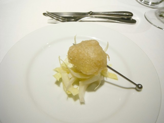 穴子のフリットというと結構衣が重たいしっかりした物が多いがこちらは素揚げに近いくらいの物で穴子の味をストレートに感じる。