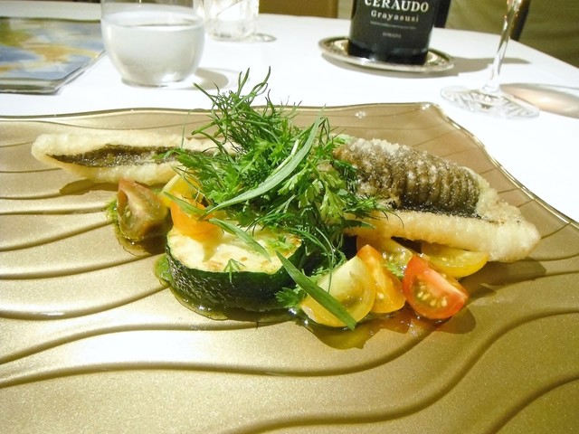 穴子がめっちゃ美味い。合わせたのは同じ愛媛県産のズッキーニなどの野菜達とサルサヴェルデ。某フレンチで穴子のフリットに合わせたサワークリームが全く合わなかったがこれはどっからどう食べても美味い。