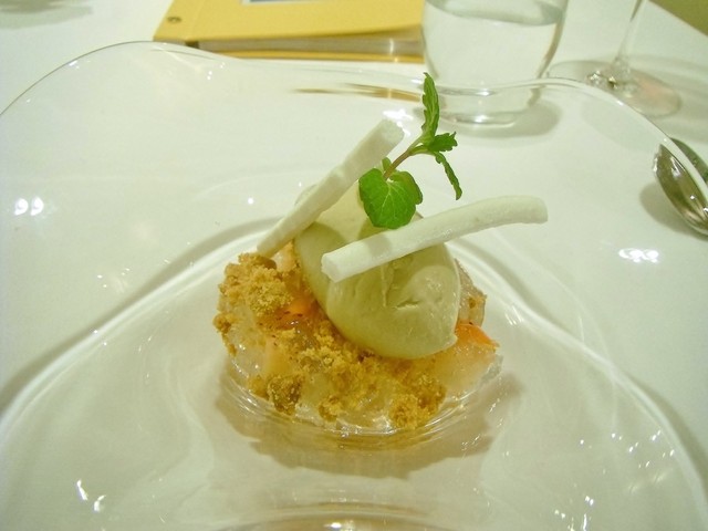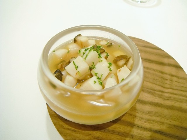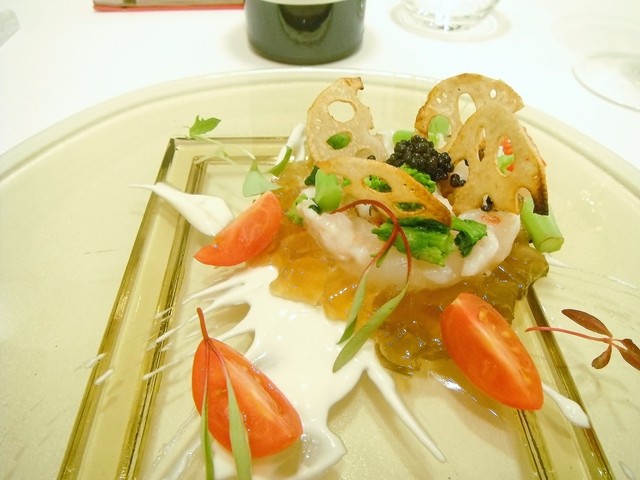 まずキャビアが美味い。よく何かと合わせたキャビアは食べる機会も多いがグランメゾンとかには行かないのであまり上質な物に巡りあった事がない。美味いと思ったのはこことラペだけ。溶ける寸前の茄子との相性も素晴らしい。