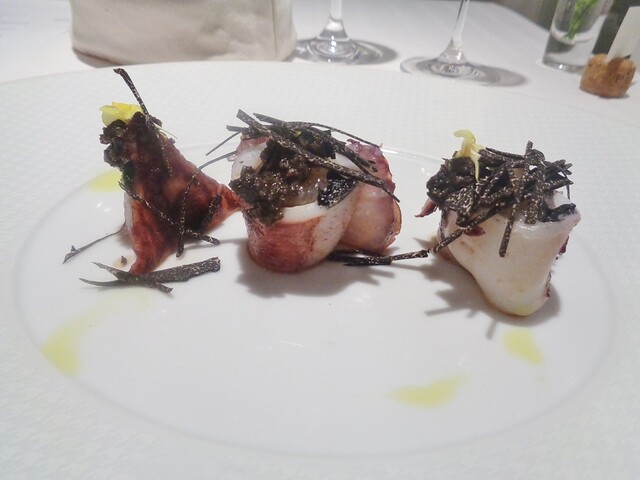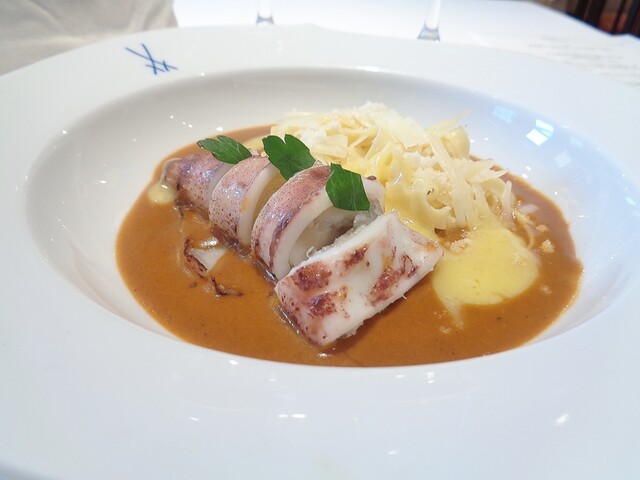 イカのセート風もこちらで初めて意識した料理で、今回はある事情からイカスミの入ったタイプ。元々イカスミ好きなんで大歓迎。こちらのお店を心酔してるあるイタリアンのシェフはカチュッコやズッパ・ディ・ペッシェのベースのスープをイカから取るらしいですが何となくそれを思いだした。パスタと絡めると非常に美味い。