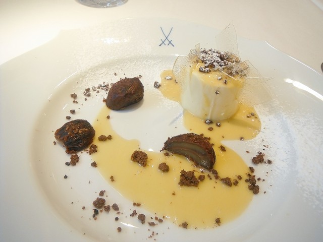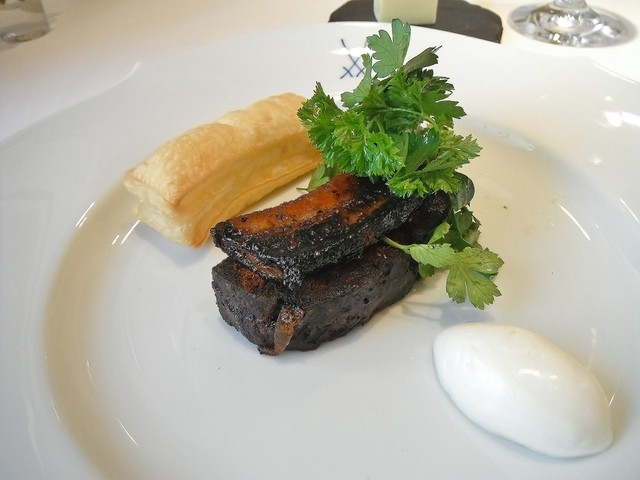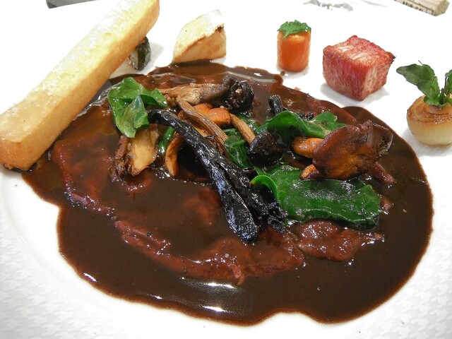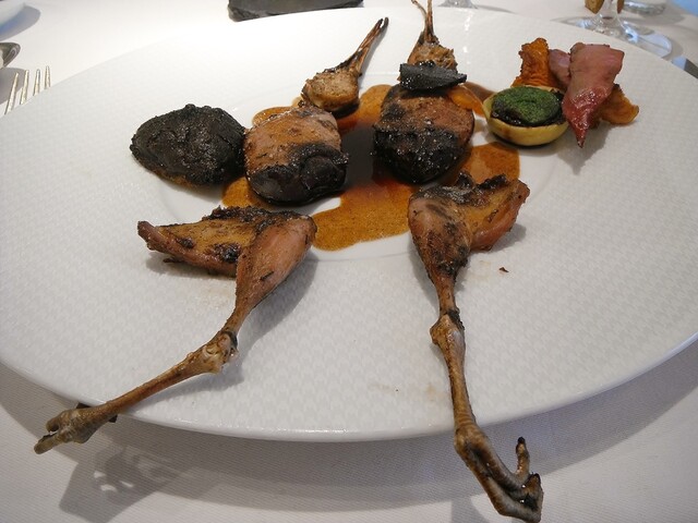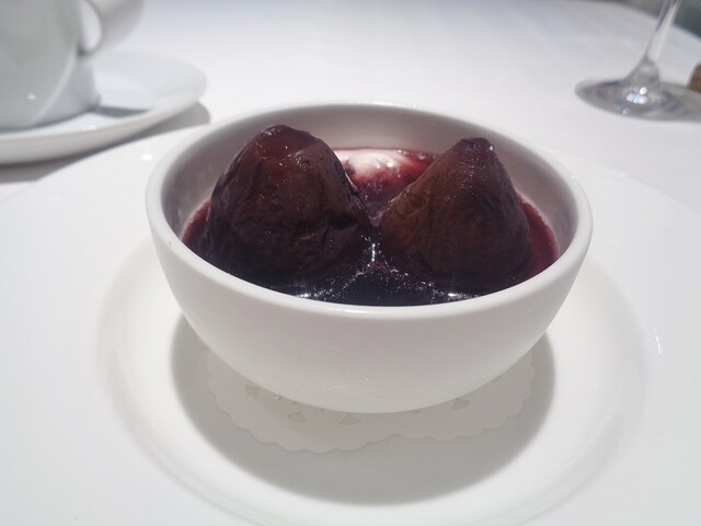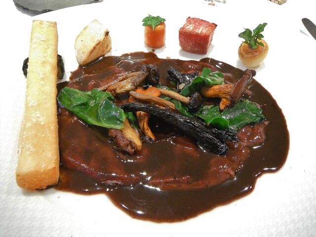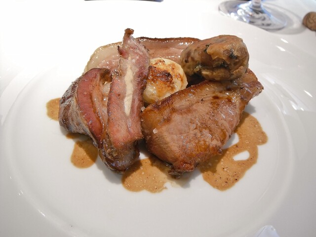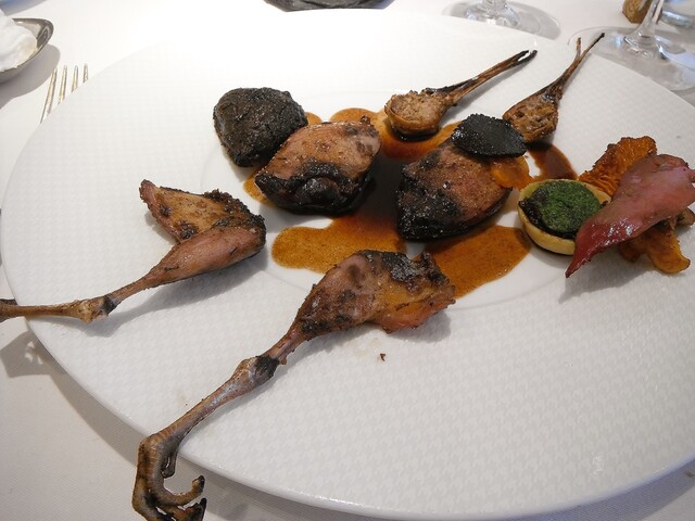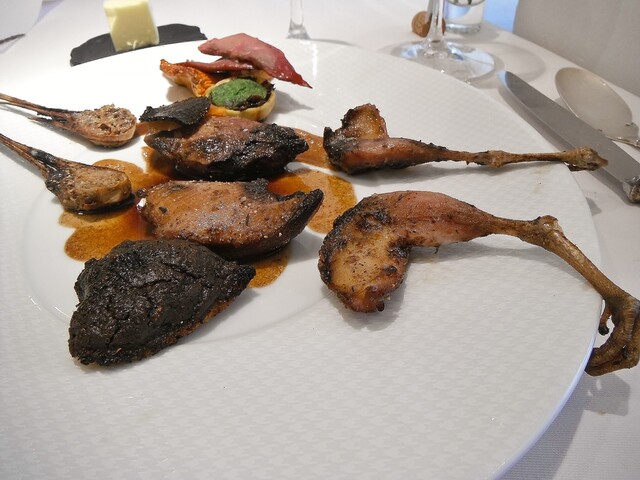 メインはこちらでは何度頂いてるかわからないコルヴェール。ジビエとしてはコルヴェールそのものにそれほど拘りはなく通常ならあれば食べるといったくらいの食材ですが、ここのだけはほぼ毎年食べている。最近コルヴェールに関してはエギュイットにサルミというスタイルに傾倒しておりそれに関してもここの影響が強い。コルヴェールのフォンを2度取りしてるのでサルミの味や香りがふくよかで美味い。