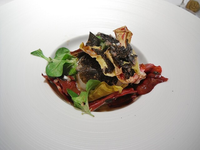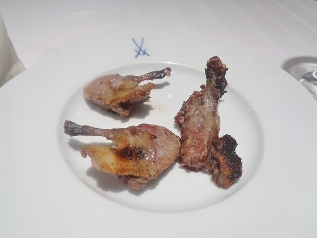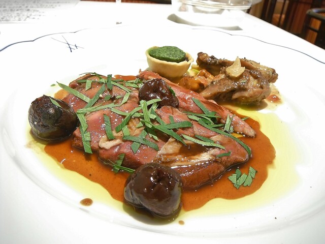 こちらでは毎年恒例となっているコルヴェールのサルミを頂きに参りました。数年通ってる店は数あれど毎年同じ料理を食べに行く事はほぼありません。しかもジビエの中でも特別好む食材ではないコルヴェールともなれば尚更。雷鳥とかなら別ですけどね。基本的にはコルヴェールは再リクエストしてまで食べたい食材ではありません。仕立てとしては王道といえば王道ですが食材に対して的確な調理を施すというのは簡単な事ではありません。カットの幅や厚み一つで味わいが全く別の物になってしまうからです。そして毎年同じようにやっても全く同じようにならないのが料理の面白くて楽しいところ。過去のを全て明確に覚えてるわけではないですが、こちらに初訪問した時に食べたコルヴェールは再訪のきっかけにはならなかった事を考えると確実に前より美味くなってるのだと思う。相変わらず美味いと感じるのは、食べる側も様々な経験を経て味覚も変化