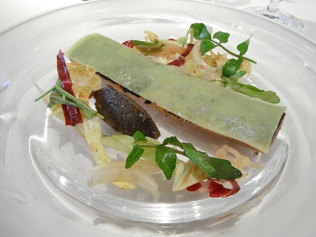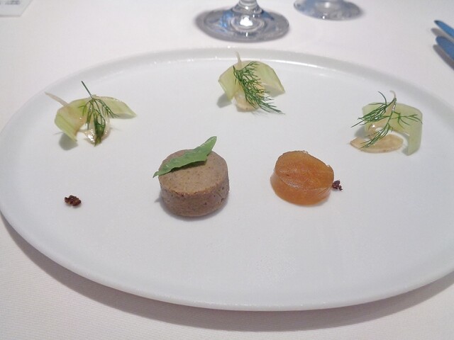 アミューズは鮎。今年の鮎は例年より味がしっかりしてるような気がします。ずっと提供してる鮎パテも毎年微妙に変えてそうですが凄い良かった。