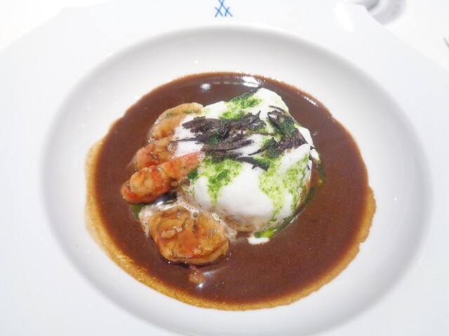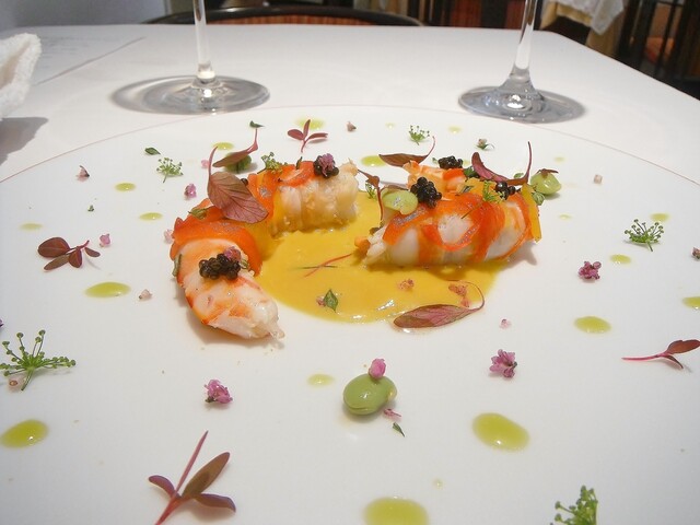 次に印象深かったのはシェフやソムリエ氏も絶対私が好きだと確信してたナンチュア。風味豊かなフランに車海老と濃厚ナンチュア。通常ナンチュアといえば最後にベシャメルやクリームを足すのですが今回はあえて加えなかったという。このタイプの料理やソースはこちらは外しがないです。むしろジビエよりこういう魚介料理に着目すべきと言いたいほど。
