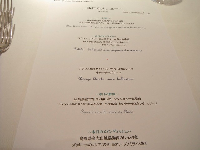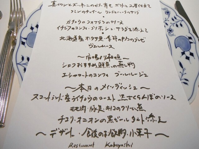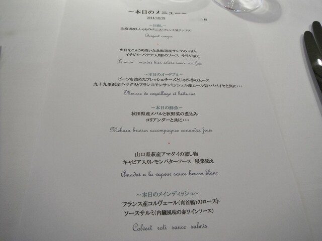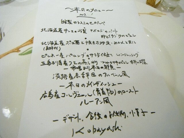 同業者が恐れおののく某店シェフが親好があるのと先日惜しまれつつアメリカ行きの為閉店したル・ベルクレイの渡邊シェフの出身店とゆう事で非常に興味がありました。