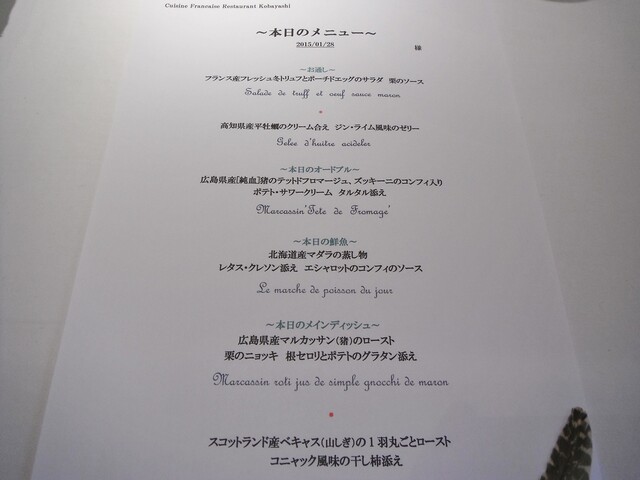 あと何度かは行くつもりですが、初回伺っただけの印象だとジビエも勿論良いんだけど拘り魚介をふんだんに使ったコースが最も楽しめるのかもしれないと思いました。