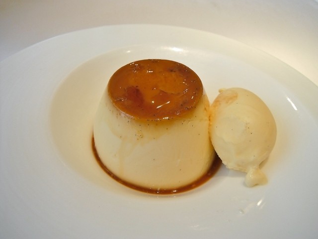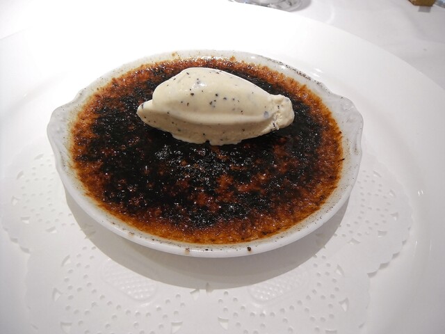 よく、どこでどう間違ったのか知らんけど底の深い器でクレームブリュレやるマヌケな店が多いけどこちらはちゃんと浅い器で表面積を広く取ってます。