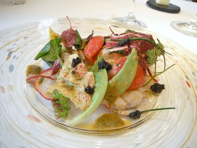 フランス ブルターニュ産オマール海老のサラダ コライユドレッシング キャビアのせ