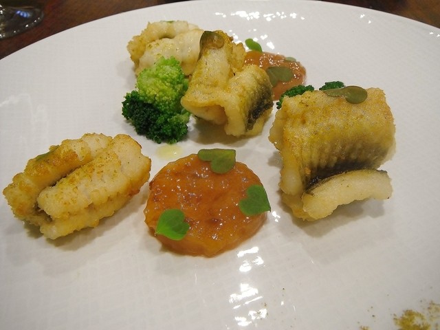 穴子のフリットスパイス風味 桃のチャツネと共に