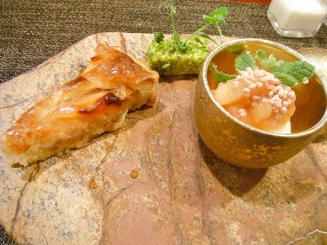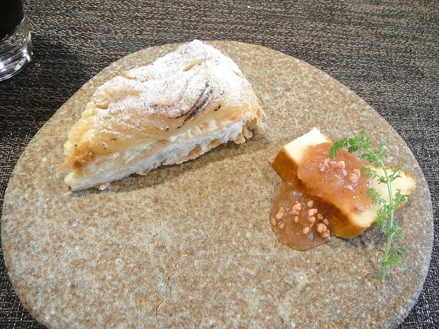 上にフィユタージュを被せたタイプではなく生地、クレーム、リンゴを重ねた物です。ランチ用デザートなのかと思ってたら夜と同じ内容、ポーションです。