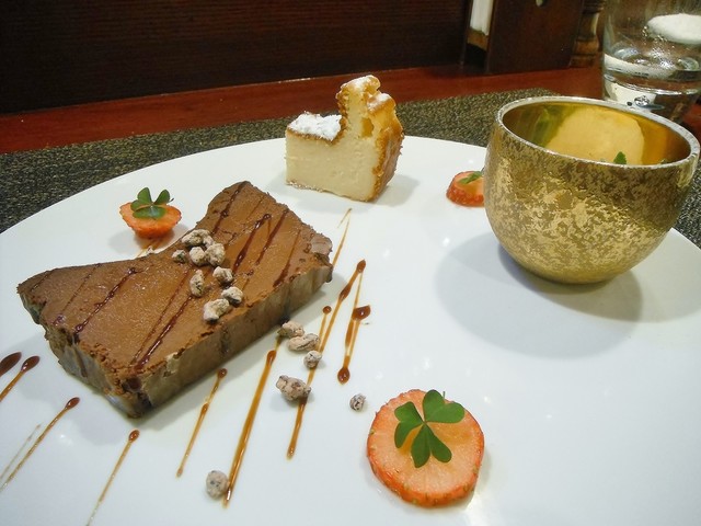 フォンダンカカオとマスカルポーネチーズケーキとミルクジェラート。