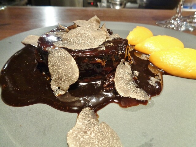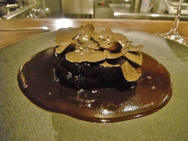 オムレツとは言え、くるまないで開いた状態の卵にたっぷりトリュフと赤ワインソース。これはどう考えても不味いはずのない料理でしょう。