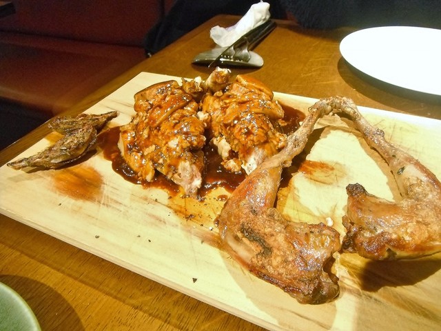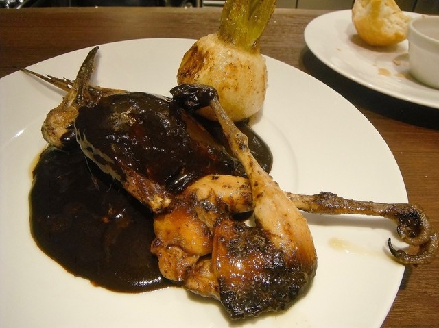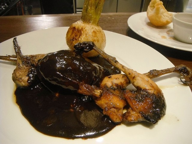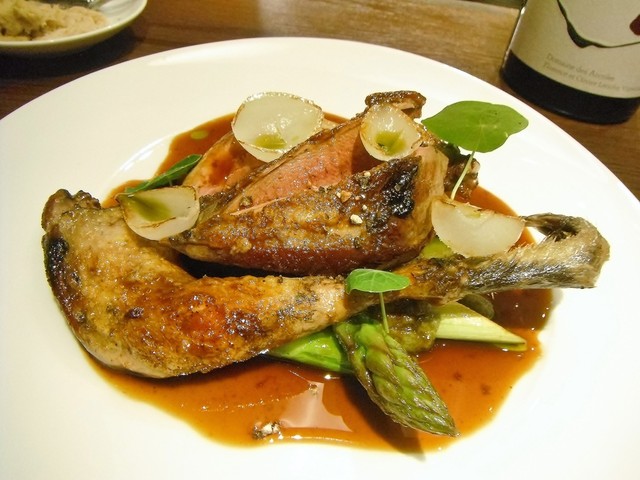 メインは今シーズン初のジビエ雷鳥でした。言うまでもないですがジビエって個体差ありますんでね。ジビエ食うならどこがオススメと聞かれても返答に困るんですけど特定のジビエに関してならいくつか勧められる店はある。雷鳥はここが美味い。結構様々なソースで頂いてきましたがどれも美味かったです。雷鳥は元々個性的な香りがあるのでストライクゾーンが狭いというか個性を出さないと雷鳥らしくないし出し過ぎると強烈過ぎるしという素材だと思います。私自身2ヶ月熟成雷鳥なんかも好きですが、毎回ちょうど良い案配で出してくれるのはここ。ほんと美味い。多分シェフ自身は雷鳥好きじゃないと思うけど。