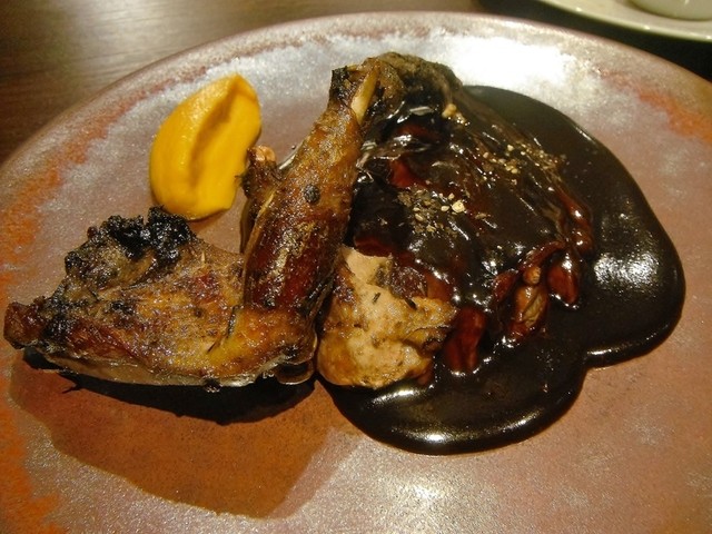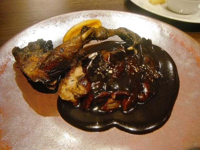 雷鳥のロティ、ほろ苦いコーヒーとチョコレートのソース