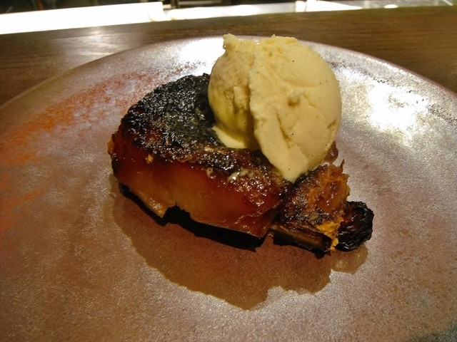前回はソースを塗りながらサラマンで焼いてましたが今回は白焼き風にし最後にソースをかけて里芋と合わせた。和食なんかだったら数万円のコースで一口サイズしか出ないでしょうがこの豪快なポーションもここならではでしょう。鰻好きには堪らない料理です。