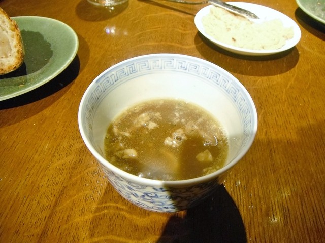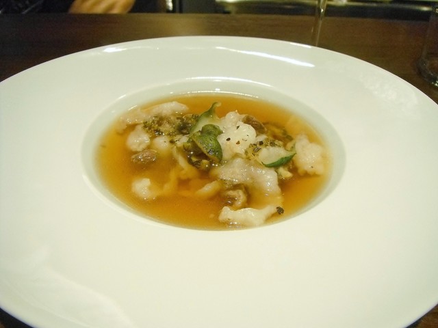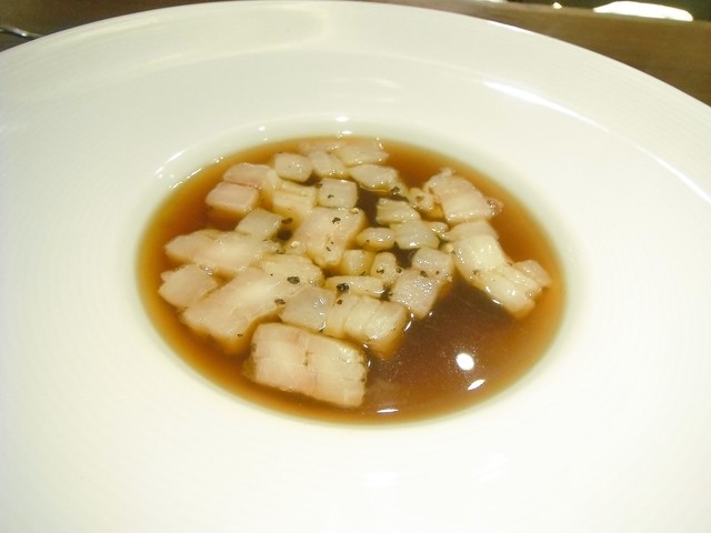 コンソメ自体は牛の物。こちらで頂くコンソメはもとよりスープ系全般かなり美味いです。クリアで芳香が素晴らしい。コースに一品スープがあって有難いと感じる数少ない店だと思っています。