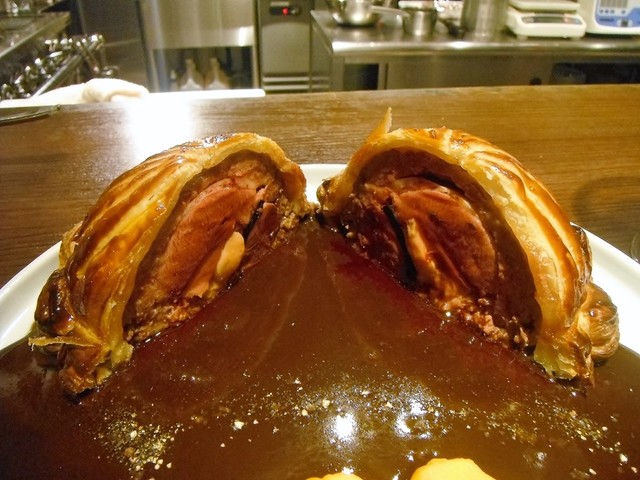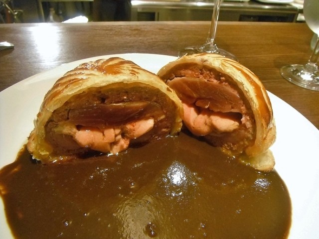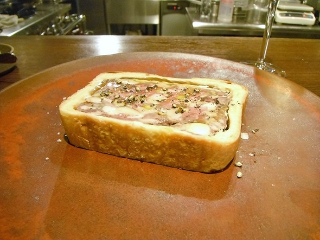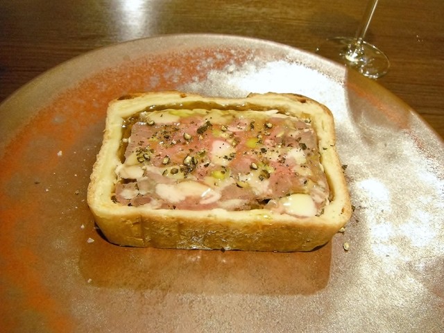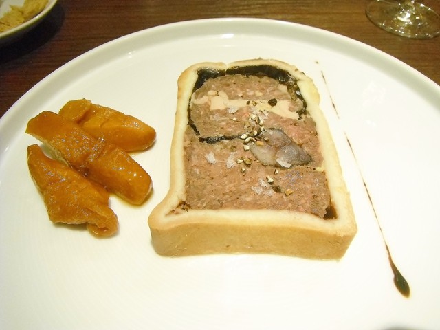 某ライバルシェフが来年開催のパテアンクルートのコンクールを狙ってるとの事で自分もコンクール狙いの人が作るパテアンクルートと他所との差の基準を知る為に意識して選ぶようにしてる。ファルスの部分はかなり美味かった。思えばここのパテ・ド・リエヴルを超えるパテはほとんど食った事ないかも。ジビエ系パテの作りは秀逸かと思います。生地は良いのか悪いのかわからないけど他所に比べて粉っぽさというかボソボソした感じは少なかったと思う。