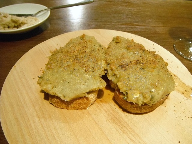 3皿めは手羽先にブーダンノワールを詰めて素揚げにした物。フレンチで出されるこのテの料理はそのまんま手羽先餃子みたいな場合が多いですがブーダンノワールってとこが良いですね。
