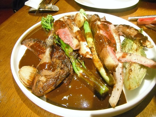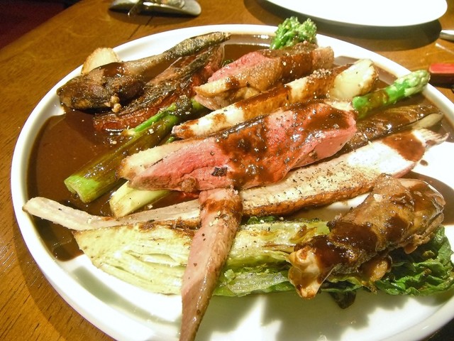 塊で出さなきゃいけないという固定概念を持っていませんか?確かに多少色気はなくなるが、ちょっと前に食べた牛肉が鳩などの頭蓋骨噛み砕いて食べる自分が咀嚼不可能なくらい固かった事などを考えたらこういうスタイルで良いんじゃないかなとも思う。甘味のある脂部も食べやすいしとても良かった。