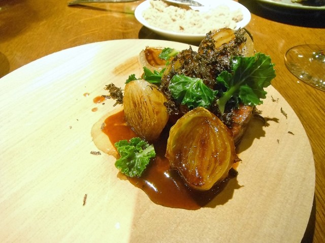 イタリア産ロバのランプ肉のステーキ、エシャロットソース