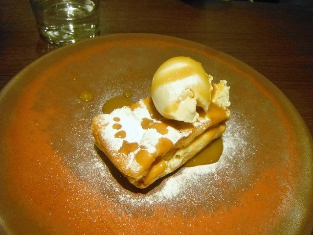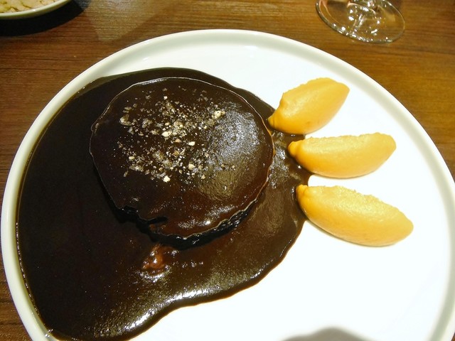 何とフランス産野うさぎ。ファルスはリエーヴルのミンチとフォアグラ、黒トリュフが丸ごと入った物。割った時の香りがエクセレントですね。肉の古くなった匂いとかは一切ないです。それにもましてソースがヤバい。濃厚で鼻から抜ける香りが堪らない。多分普通の感覚だとこの量感のコースの最後に