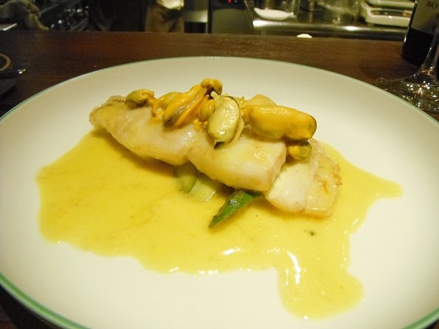 ・鮃のポワレ モンサンミッシェル産ムール貝のサフランソース