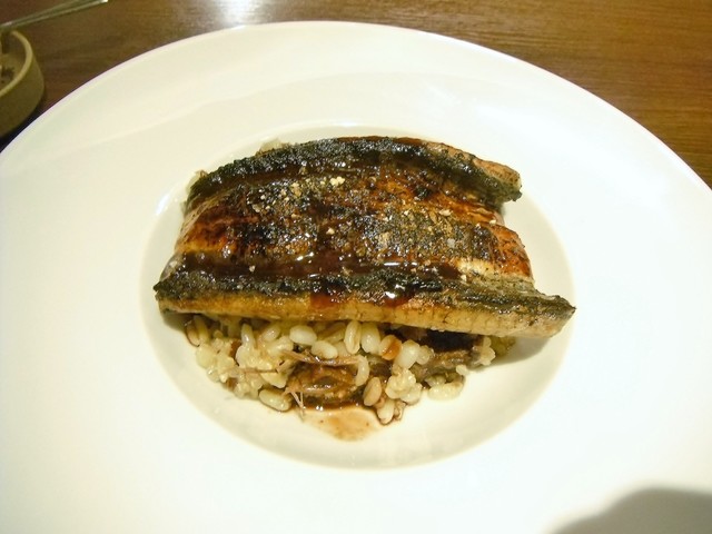 ・鰻の炭火焼きと牛頬肉と雑穀のリゾット