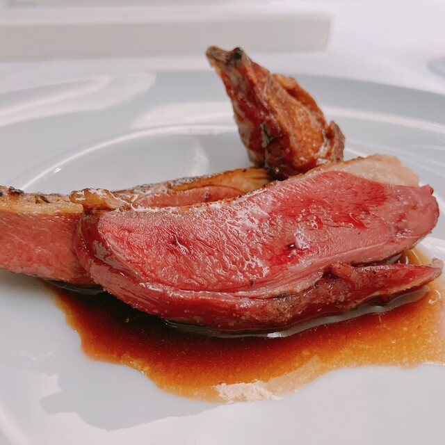二週間熟成させた北海道産の夏雌鹿のロティ フランボワーズと黒胡椒のソース