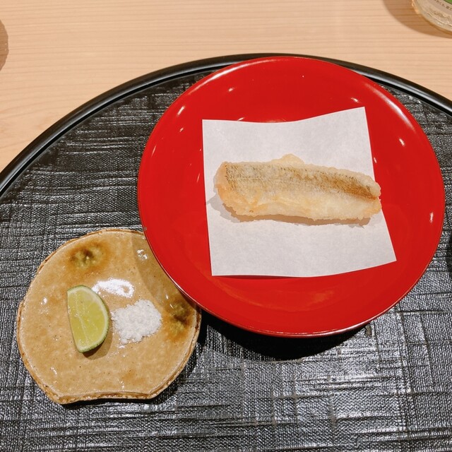 甘鯛の天ぷら…相変わらず鱗を程よく間引いてほろほろとサクサクのバランスが素晴らしいです。