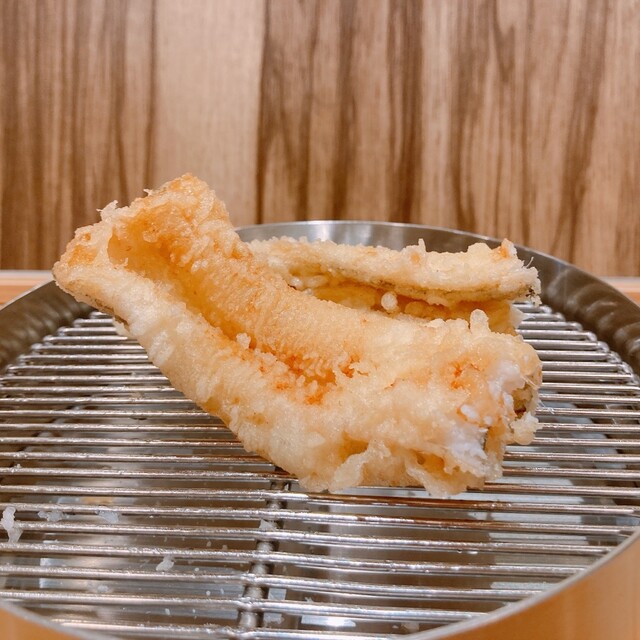 鱚の揚げが絶妙で、身がほろほろとほぐれ、穴子は嬉しい程香ばしい。私の天ぷらイメージより少し小さめ。このくらいの大きさが天ぷらにベストなのかもしれない。
