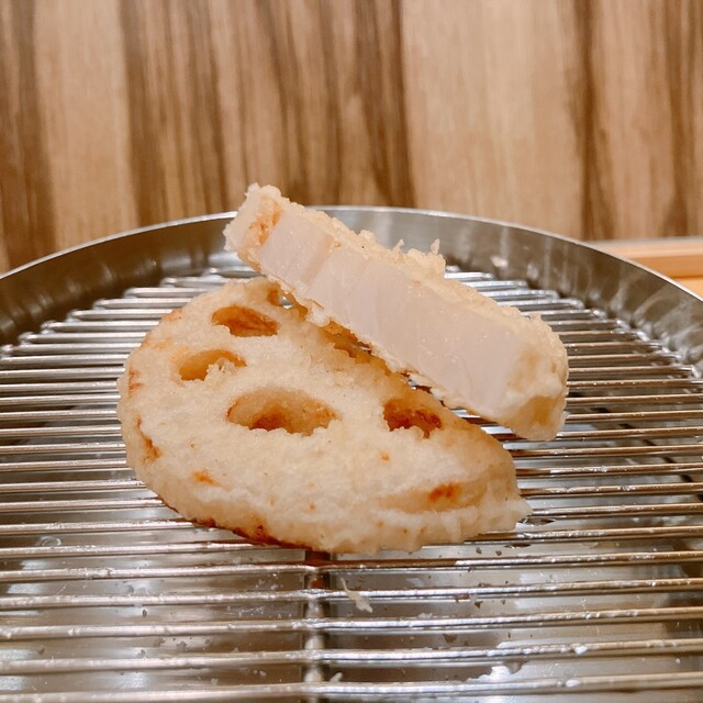 10月は、もっちり食感の銀杏、驚くほど軽い食感の熊本赤茄子、濃縮された旨味の舞茸、歯切れの良い炭イカ、大葉で巻かれた白魚、甘み引き立つ蓮根など…。