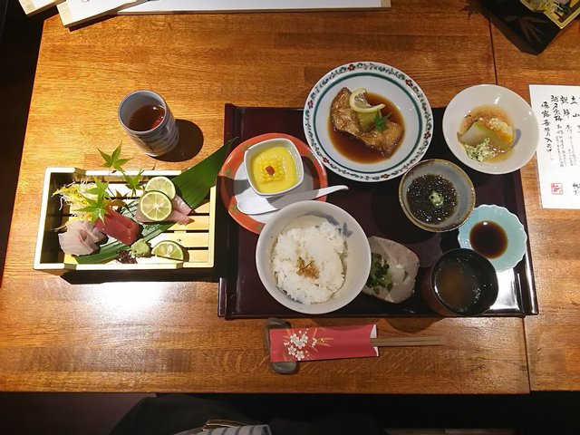 今日は、妻を連れてお昼の「お造り御膳:1600円」を頂いてきました。 見た目は写真を見て頂き、当然、味は文句有りません。